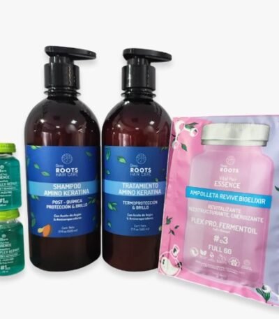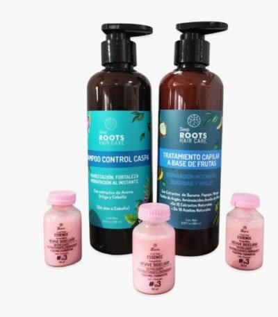 Incluye Shampoo, Acondicionador, Tónico crecepell, ampolleta de ácido hialurónico y tratamiento.